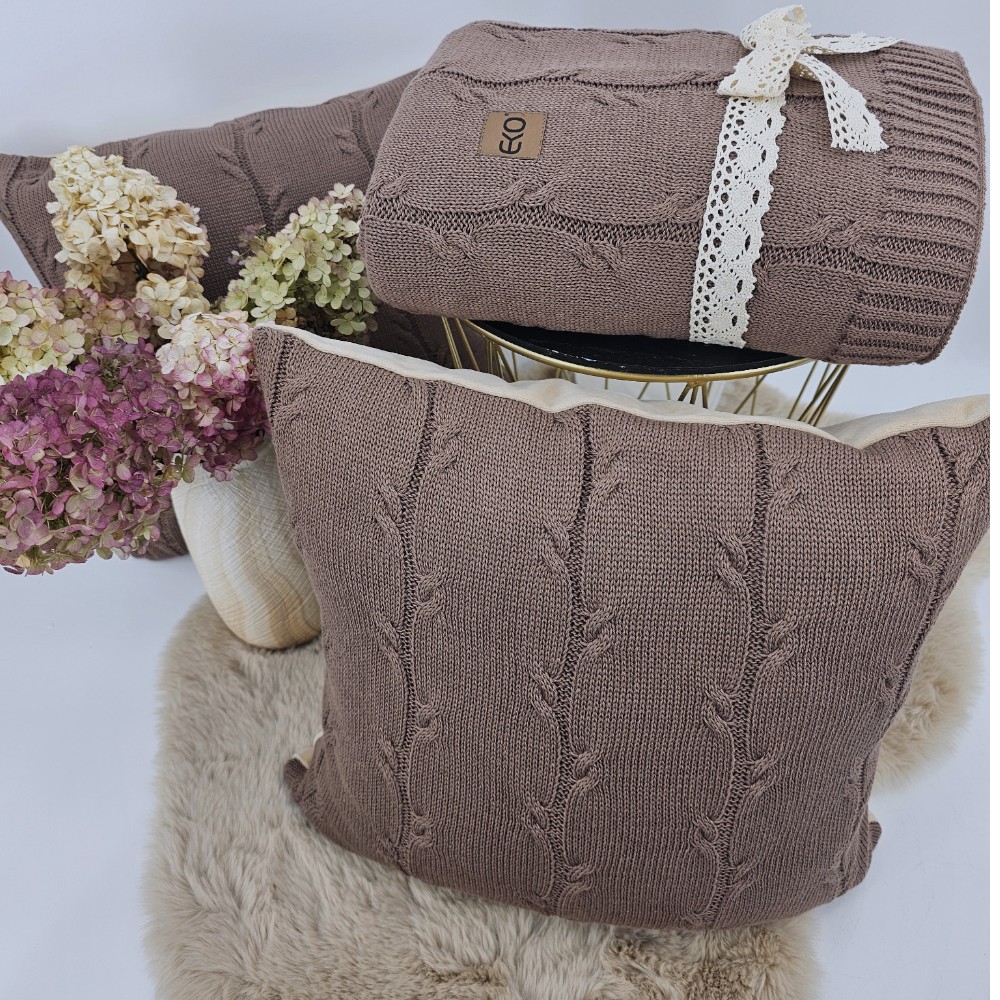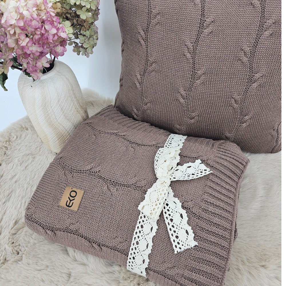 Komplet koc i poduszka – bawełna z dodatkiem kaszmiru - SET ROMA CHOCOLATE